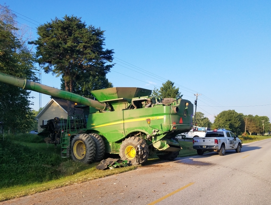A resident that lived across the road advised he saw one vehicle go around the combine and then heard a loud crash and saw a car rolling down the highway and into a yard just across the road. Yates was transported to Deaconess Hospital in Evansville due to her injuries.