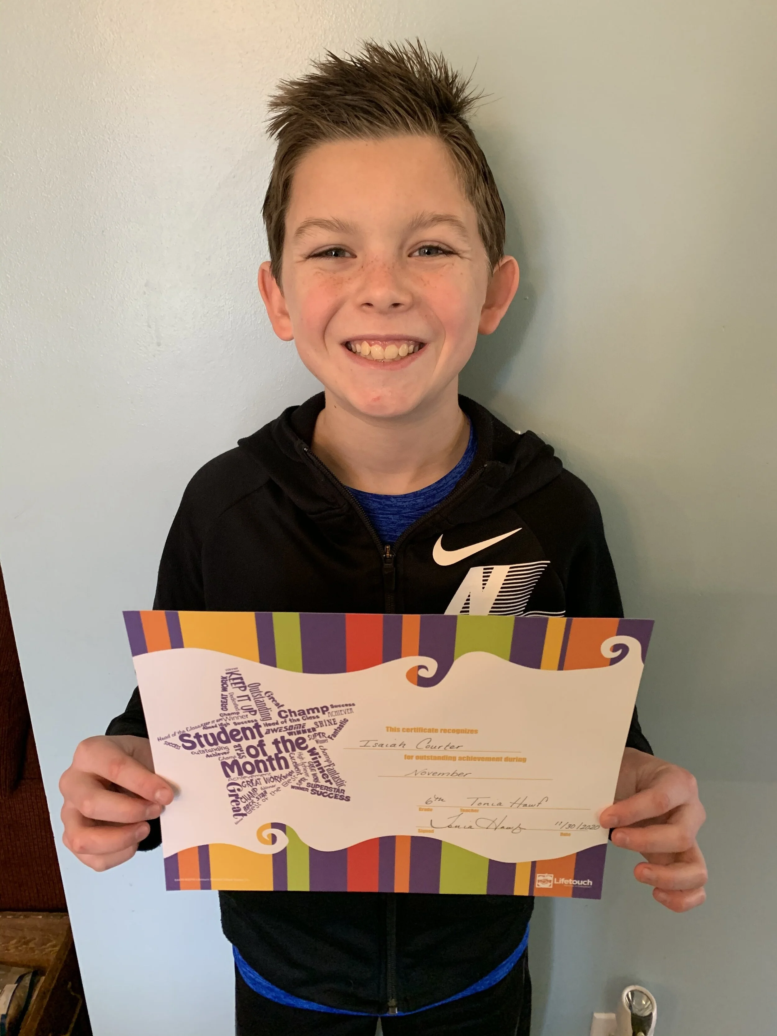 Madisyn Weiss (Kindergarten), Whitley Grimes (1st Grade), Easton Garrett (2nd Grade), Colton McGee (3rd Grade), McKinlee Grimes (4th Grade), Isaiah Courter (Junior High), Avery Swift (Junior High).