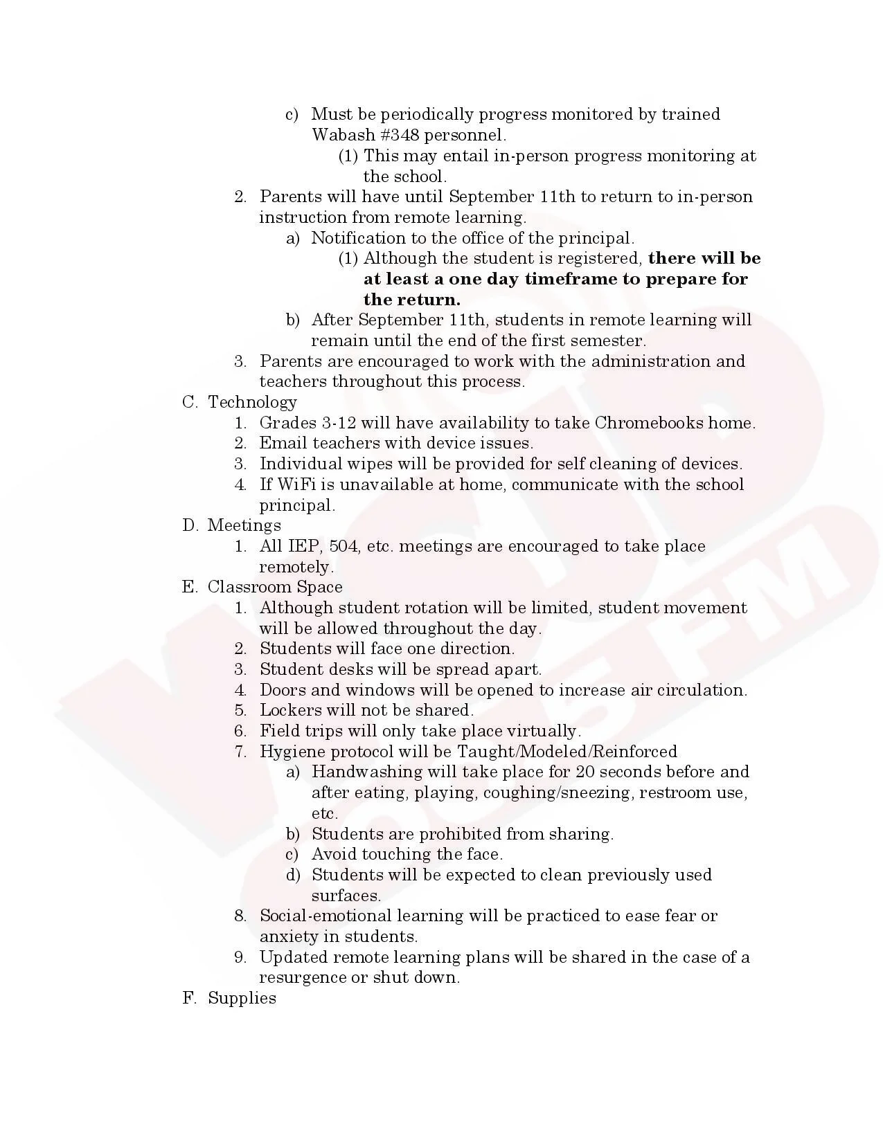 Here are the details on the return to blended instruction in Wabash District #348 that was announced this morning by Superintendent Dr. Chuck Bleyer: