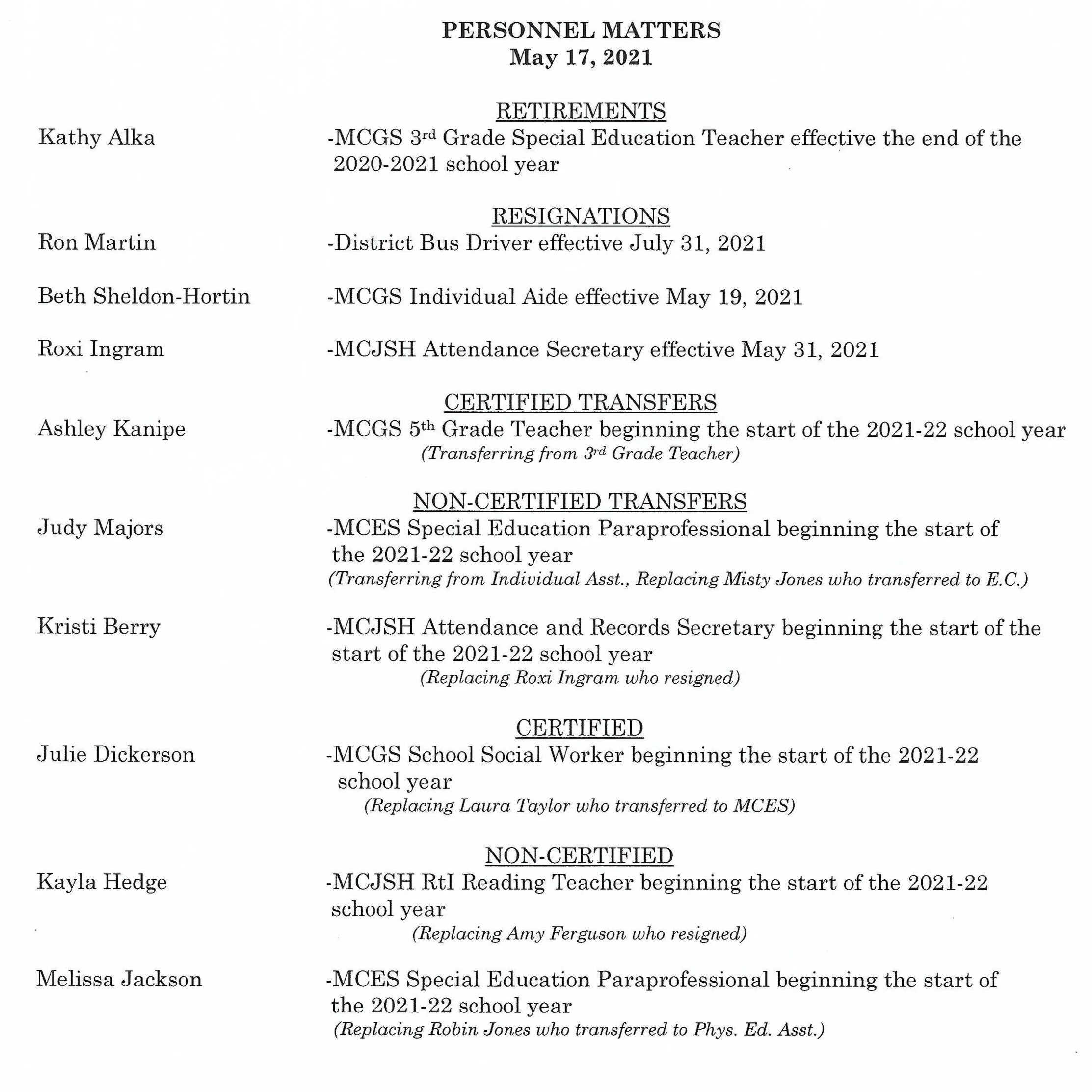 May 18, 2021 Chandler Madden Wabash District #348 School Board Employment Matters May 18, 2021 Chandler Madden The District #348 school board approved these personnel matters at Monday’s monthly meeting…. Chandler Madden