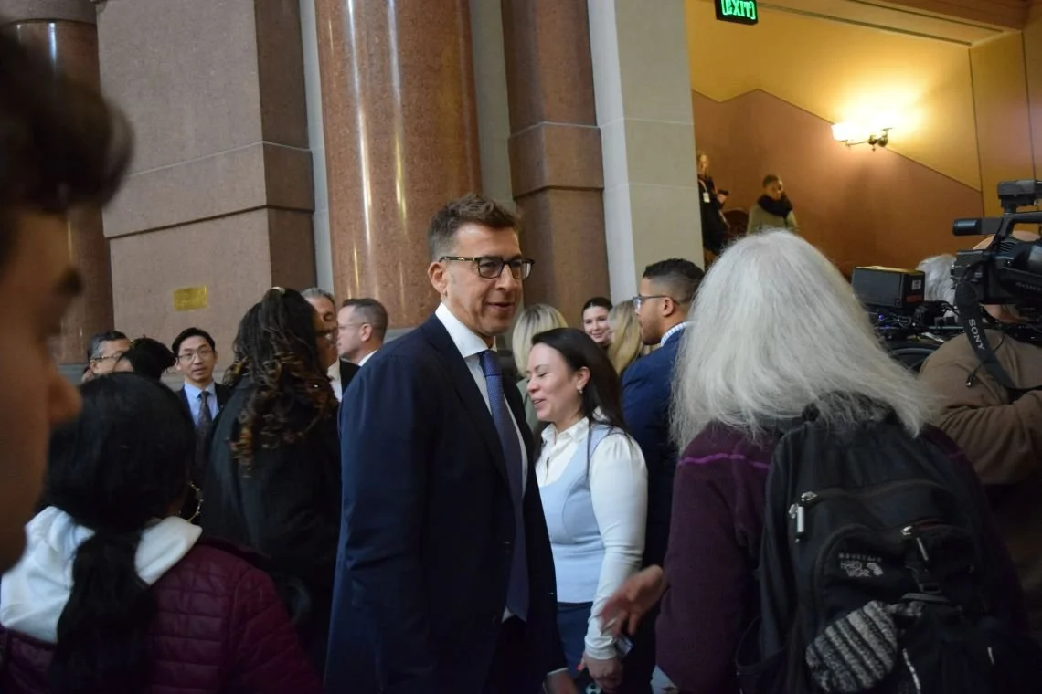 Illinois Secretary of State Alexi Giannoulias exits the House chambers in the Illinois Capitol. (Capitol News Illinois photo by Jade Aubrey)