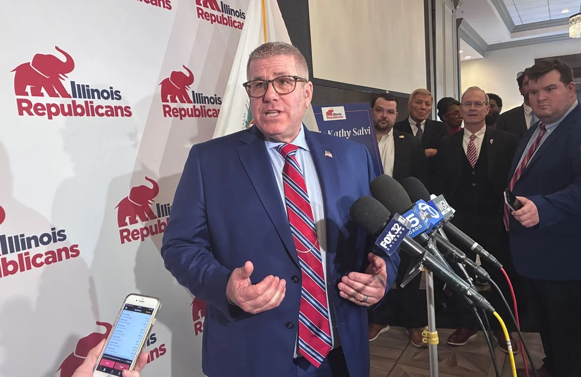 Illinois Republican Party Chair Kathy Salvi did not speak to reporters following Wednesday’s breakfast. The state party has been plagued by internal divisions for several years over how much it should embrace President Donald Trump and conservative candidates.