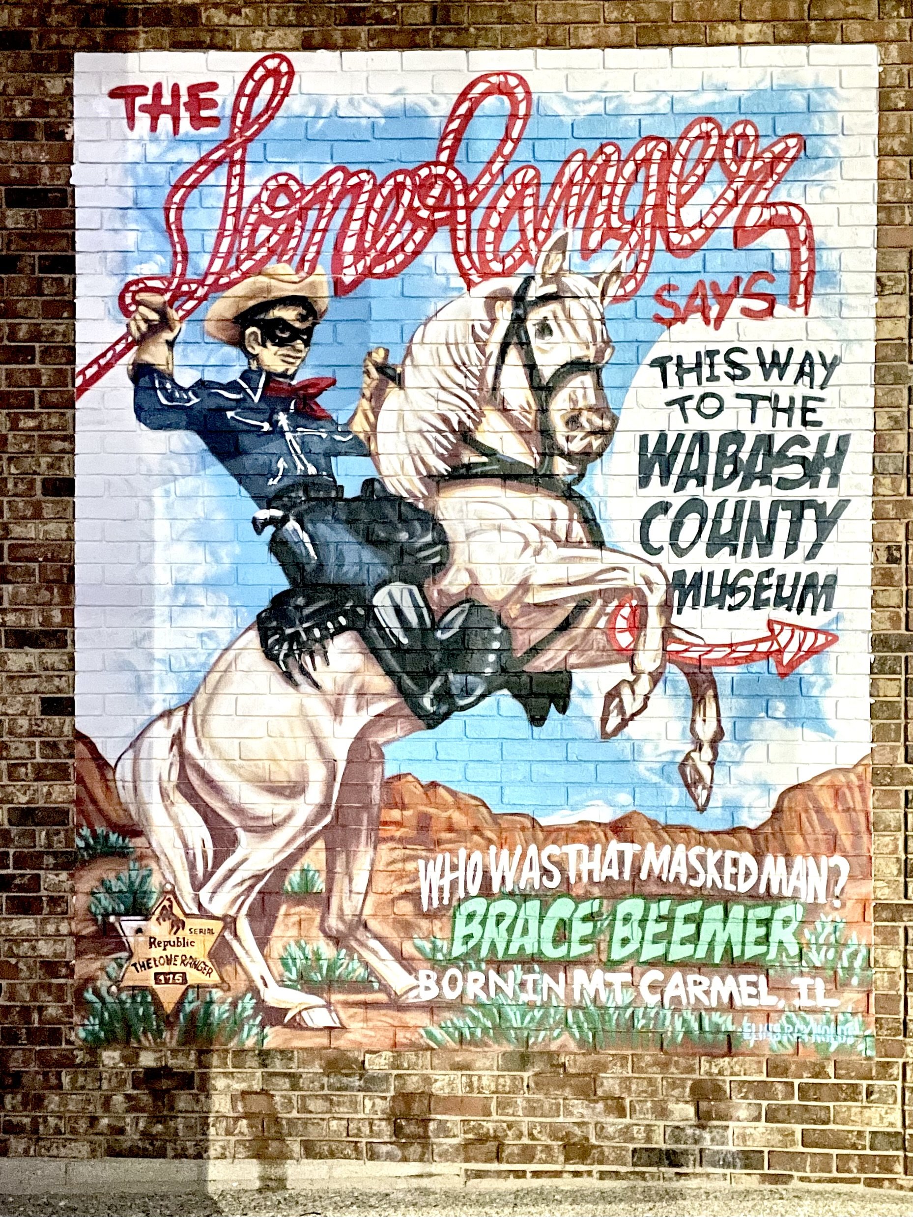 For our first painted mural, we commissioned a Lone Ranger themed mural honoring Mount Carmel born Brace Beemer, the voice of the Lone Ranger radio program throughout the 1940s and early 50s. Muralist Elias Reynolds arrived from eastern Kentucky and completed the mural on the side of the Wabash County Museum the first week of October.