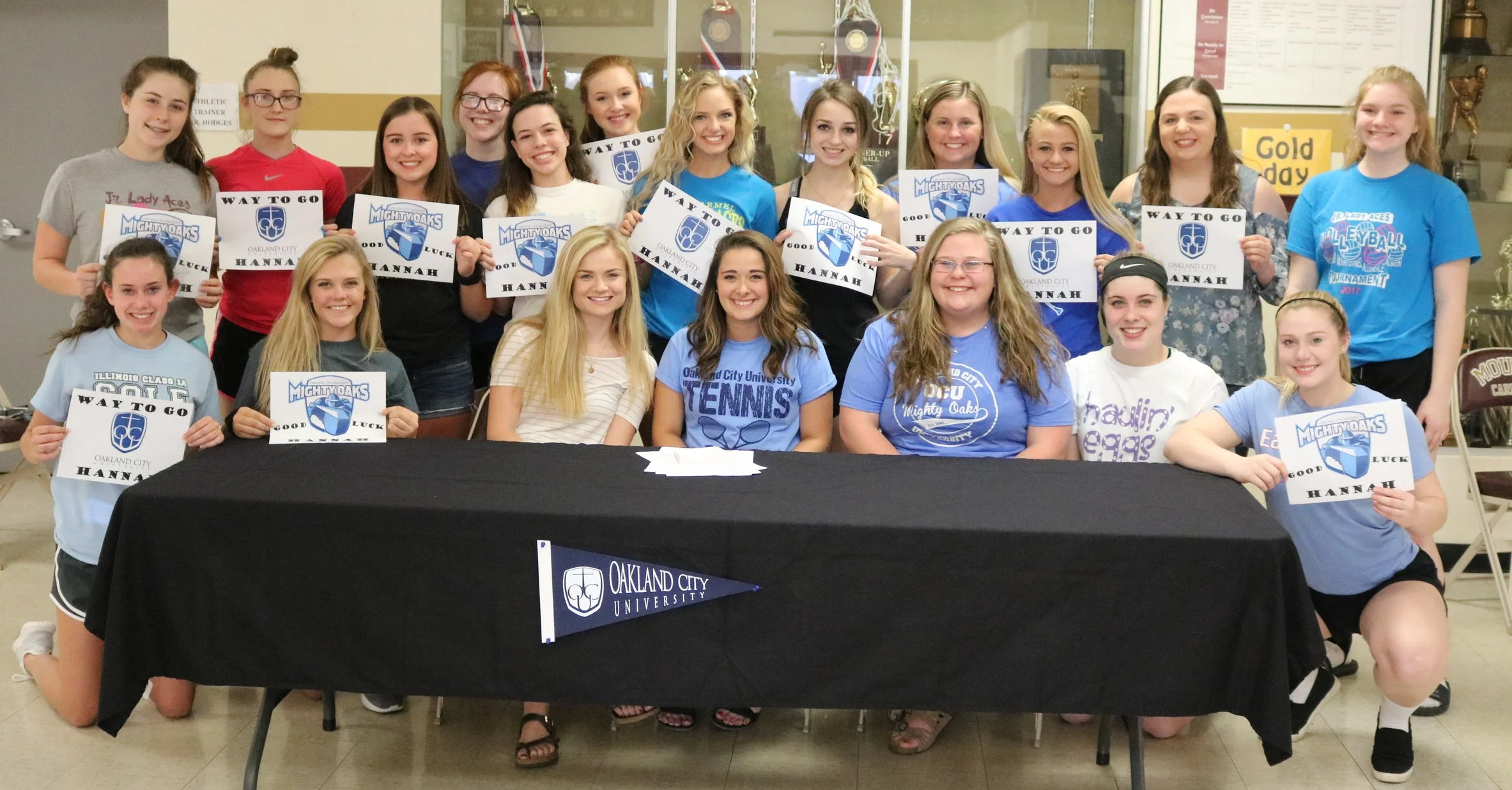 Hannah Wilson, Senior at Mount Carmel High School, signed a National Letter of Intent this evening to play tennis for Oakland City University, Oakland City IN. Hannah is receiving Academic and Tennis Scholarships.