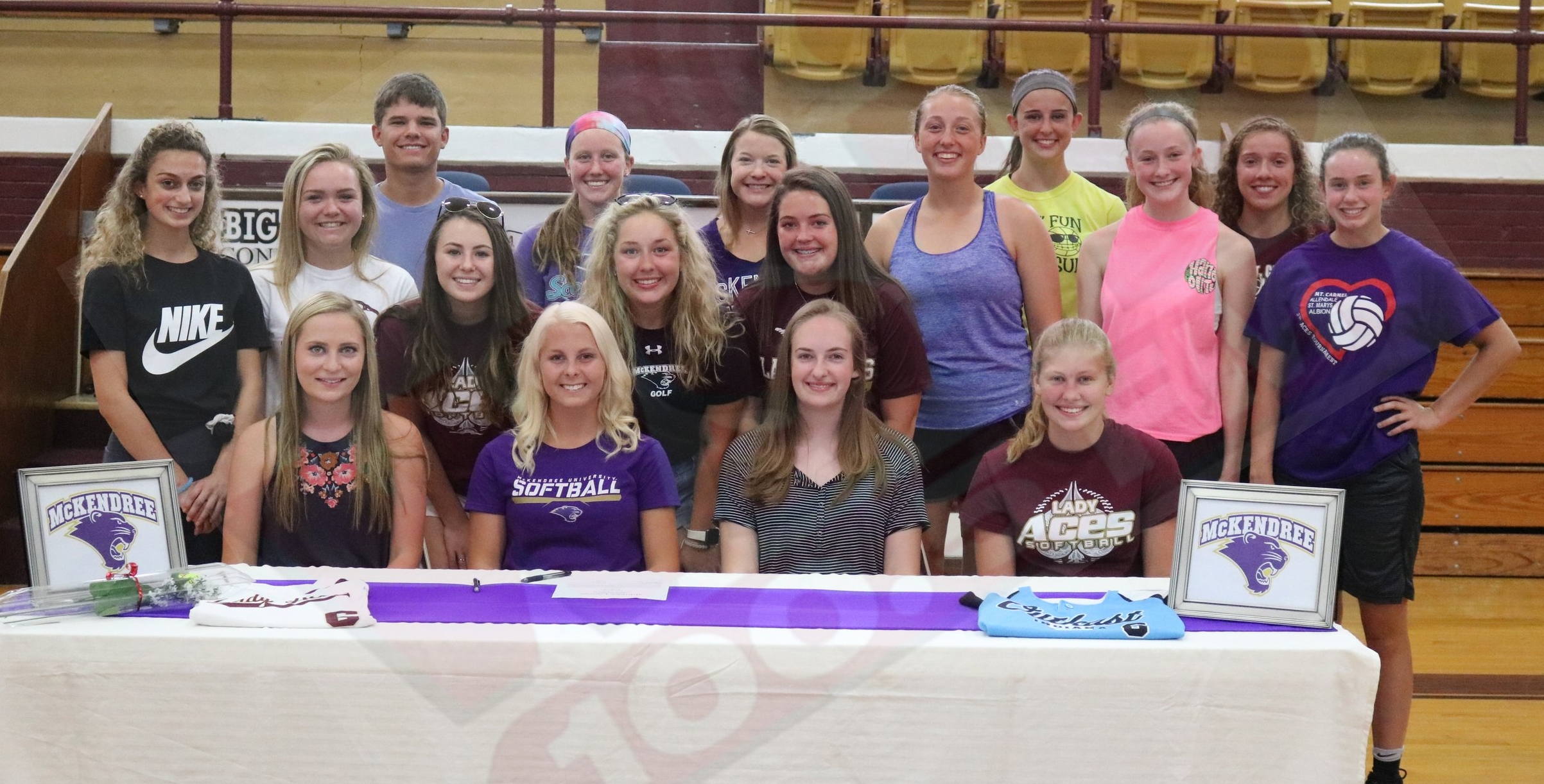 Family, friends, coaches, and well-wishers gathered this evening in the MCHS Gym as Ella Banks, Senior at Mount Carmel High School, signed a National Letter of Intent to play softball for McKendree University, Lebanon, IL. Ella is receiving both Athletic and Academic scholarships.