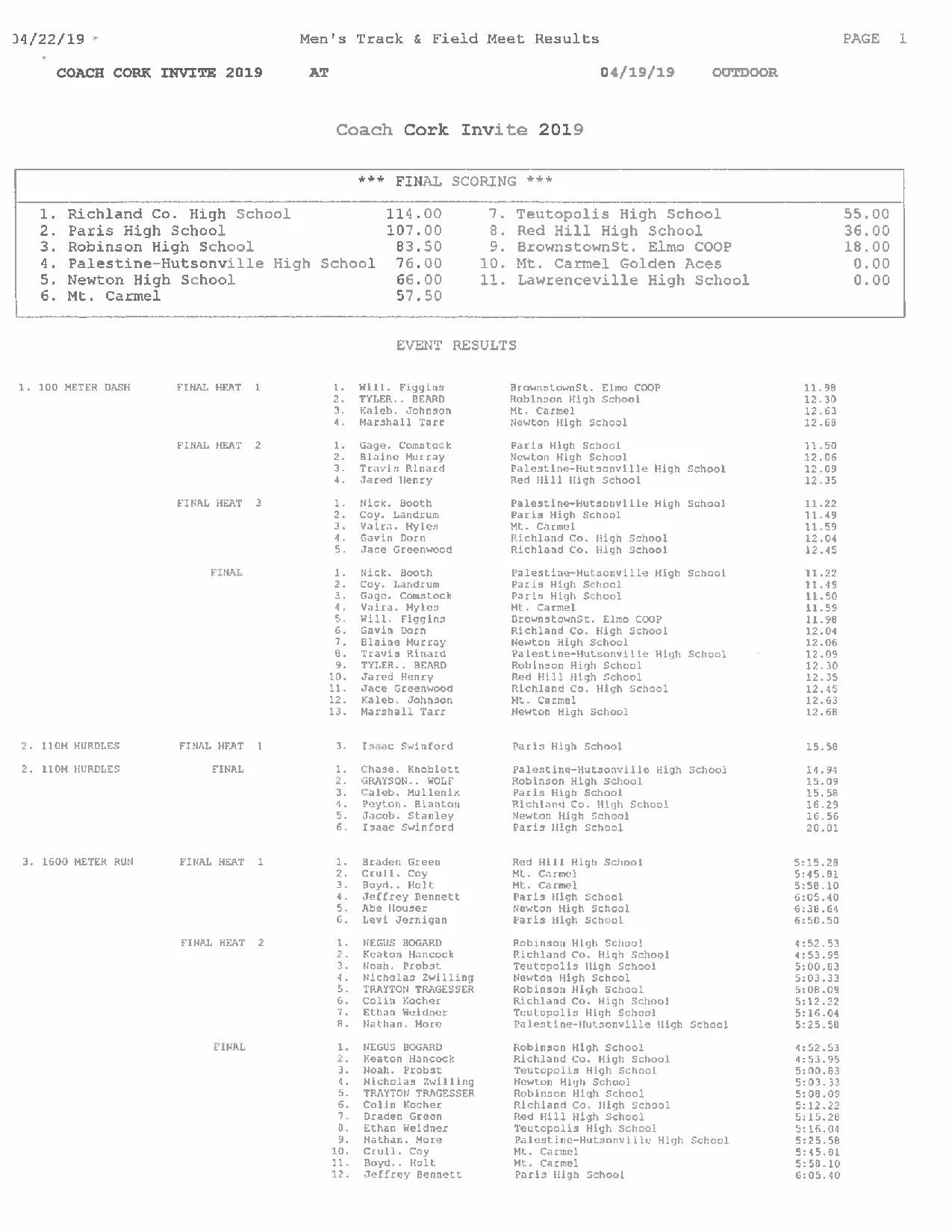 April 23, 2019 Chandler Madden Aces Boys Track Finishes 6th In Coach Cork Invite April 23, 2019 Chandler Madden Here are the complete results: Chandler Madden