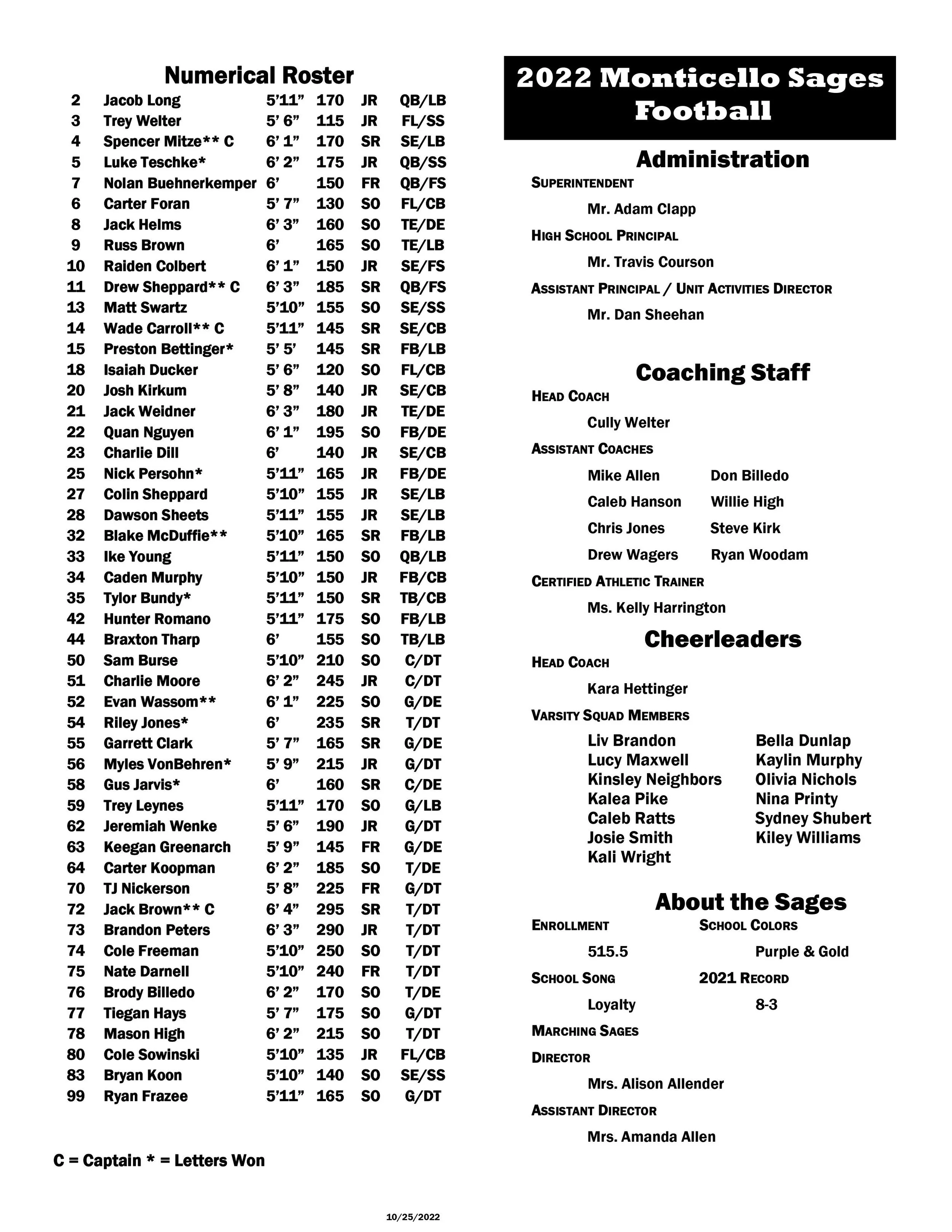 October 28, 2022 Chandler Madden Monticello Game Notes vs. Mt. Carmel 1st Round Class 3A Playoffs October 28, 2022 Chandler Madden Thanks to Monticello’s Arthur Sievers for the comprehensive game notes & stats….. Chandler Madden