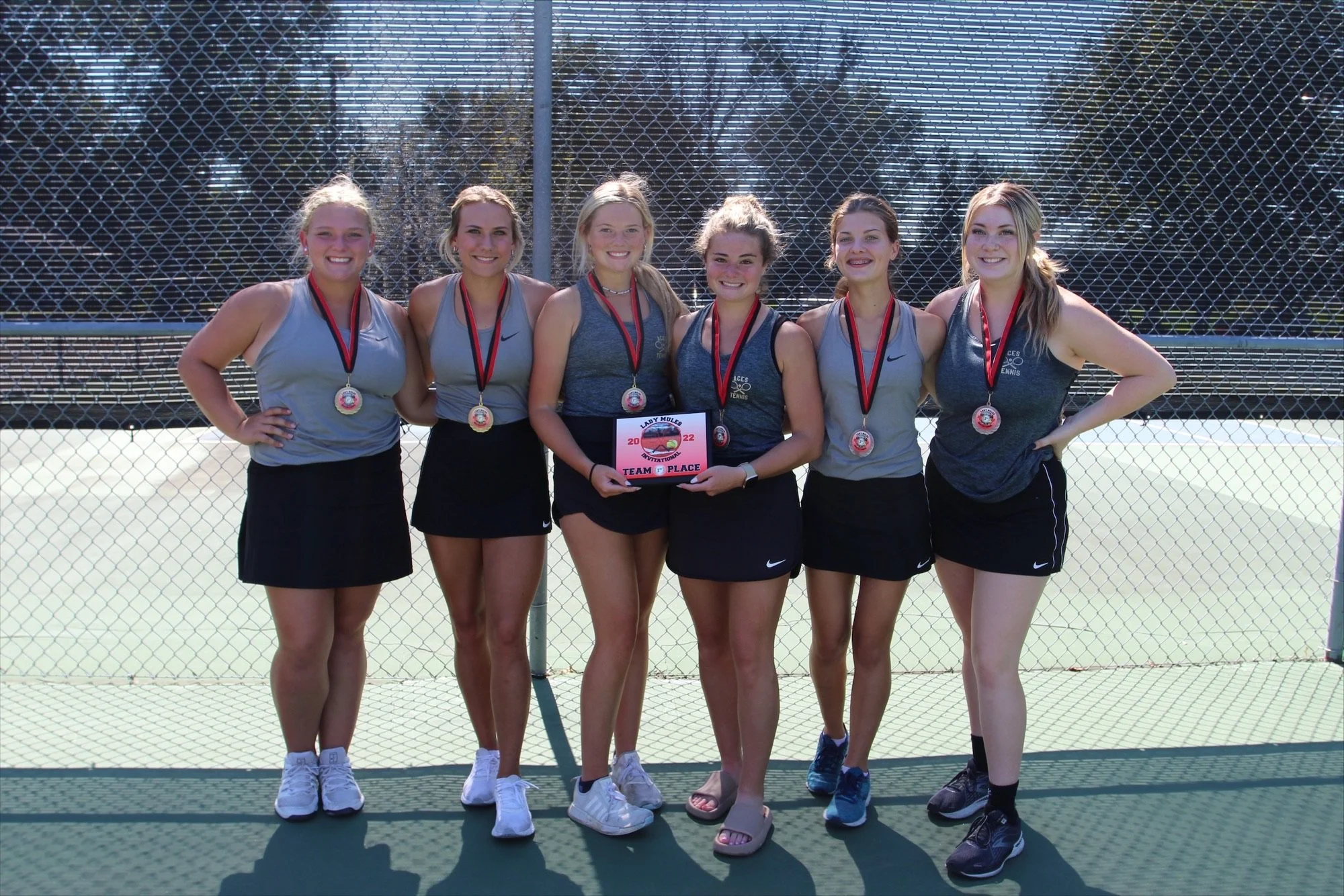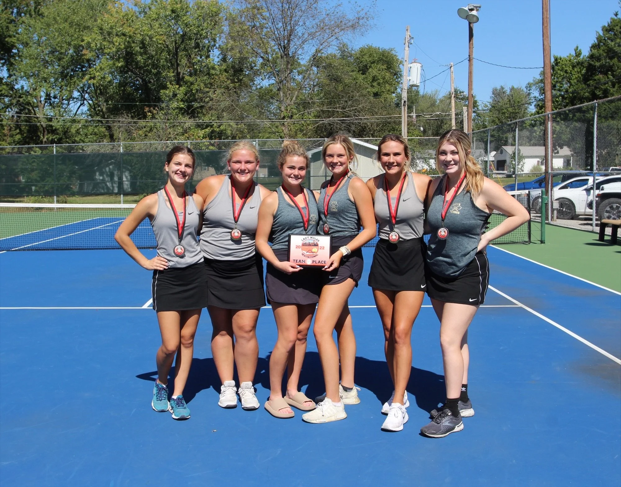 Lady Aces Tennis won the Fairfield Mules Invitational on Saturday, September 24. Benton, Fairfield, Flora, Newton and Mt. Carmel all participated in the tournament. All of the Aces medaled in the tournament, they played hard and had a great day of tennis. Camryn Strine played #1 singles and won 2nd place, Carli Merrit played #2 singles and won 1st place, Kami McWilliams and Elizabeth Hefner played #1 doubles and won 2nd place, and Mackenzie Sanders and Ashleigh Hedge placed 1st in #2 doubles. Next match is Tuesday, September 27 at the WVC tennis courts.