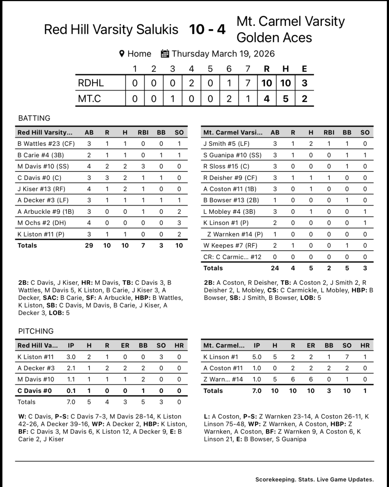 March 20, 2026 Chandler Madden Baseball Aces Fall To Salukis In Season Opener March 20, 2026 Chandler Madden 7 run 7th propels Red Hill to win. Chandler Madden