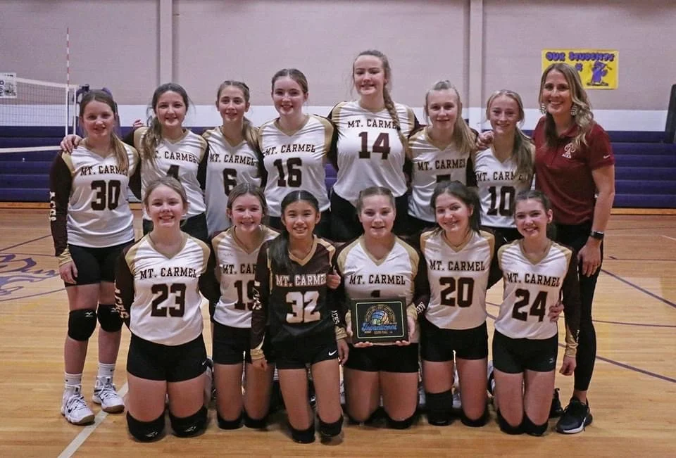Monday night Mt. Carmel Jr. Lady Aces faced Olney at home. The girls won all three matches. Starting first was the 6th grade team, they won 25-17, and 25-19.