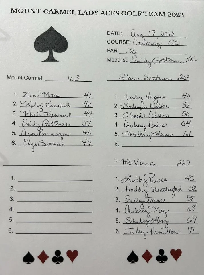 Our senior Maria Kennard was on the team that lost to Effingham St. Anthony on September 23, 2020. It was a triangular match at Olney and they had a great player, Macy Ludwig who shot a 3 under par that day! After that loss we went on to win our Regional and Salem’s Sectional!